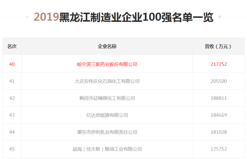 我公司榮登2019黑龍江企業(yè)100強,位列83位;榮登2019黑龍江民營企業(yè)100強,位列25;榮登2019黑龍江制造企業(yè)100強,位列40位;榮登2019黑龍江服務(wù)企業(yè)100強,位列25。