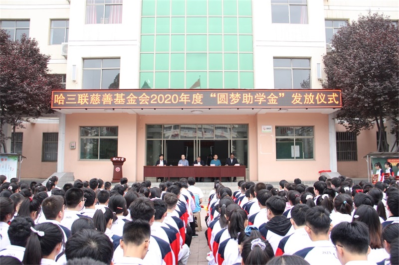 9月21日上午,哈三聯(lián)慈善基金會(huì)第三屆“圓夢(mèng)助學(xué)金”發(fā)放儀式在山西省稷山縣稷山中學(xué)舉行。此次受資助學(xué)生共有13名,均為2020年考取一本院校品學(xué)兼優(yōu)的貧困生,哈三聯(lián)慈善基金會(huì)每年將向受助學(xué)生資助學(xué)費(fèi)、住宿費(fèi)7000元,直至學(xué)生完成大學(xué)階段學(xué)業(yè)為止。哈三聯(lián)慈善基金會(huì)理事秦劍濤、副秘書長王勇,稷山中學(xué)校長王宇,副校長陳永明、閆俊東等校方領(lǐng)導(dǎo)出席儀式為受助學(xué)生頒發(fā)助學(xué)金,稷山中學(xué)全體師生參加儀式。