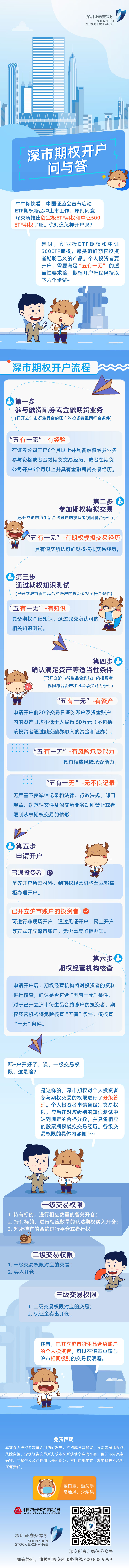 9月2日,中國證監(jiān)會宣布啟動ETF期權(quán)新品種上市工作,原則同意深交所推出創(chuàng)業(yè)板ETF期權(quán)和中證500ETF期權(quán)。為幫助投資者了解期權(quán)產(chǎn)品特征、認識深市期權(quán)新品種特色,深交所推出“深市期權(quán)上新了!”系列圖文解讀。今天是第1期,讓我們一起看看深市期權(quán)的開戶要求吧!
