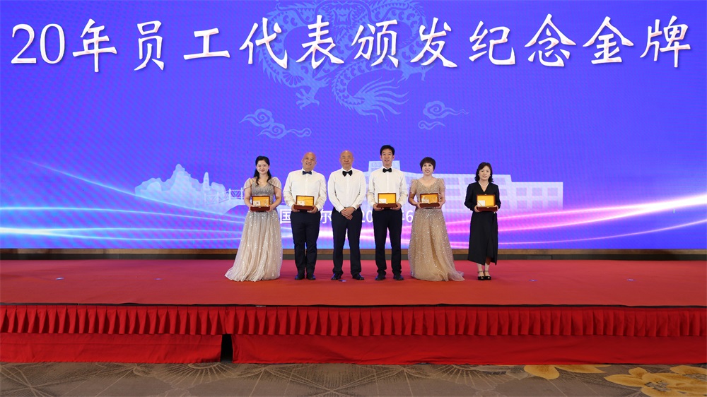活動(dòng)中,向在公司辛勤工作10年和20年的老員工代表頒發(fā)紀(jì)念金牌,以此感謝他們?yōu)楣景l(fā)展所作出的無私奉獻(xiàn),并共同分享這份榮耀與喜悅。