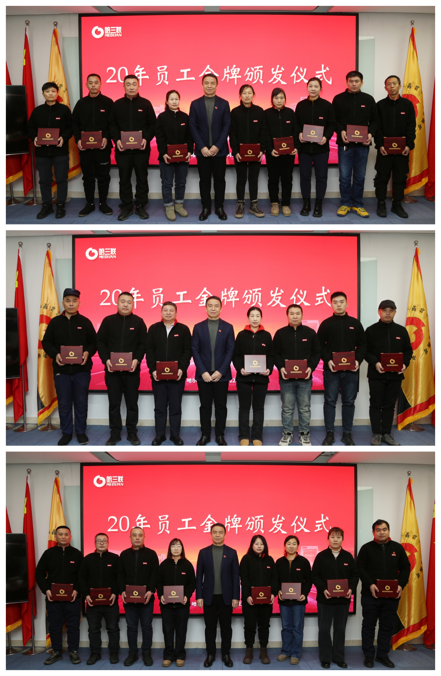 儀式上,哈三聯(lián)為入職十年、二十年員工代表頒發(fā)紀念金牌,感恩攜手同行,風雨同舟。