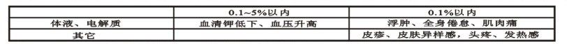 2、其他不良反應(yīng) 還可能出現(xiàn)以下癥狀(見(jiàn)表)。在增大用藥劑量時(shí),可增加血清鉀下降,血壓升高的發(fā)生。